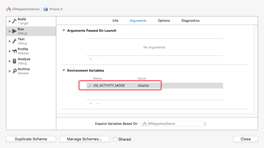 使用Xcode8及以后调试时如有无用日志输出请做以下设置,防止无用的系统日志在控制台输出,如下图