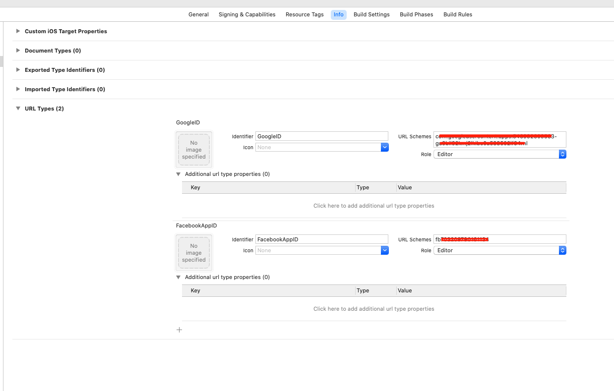 需要在info.plist的URLtype中填写Google参数,id处填入”GoogleID”,红线处填入”com.googleusercontent.apps. + id”格式,所需参数由运营提供