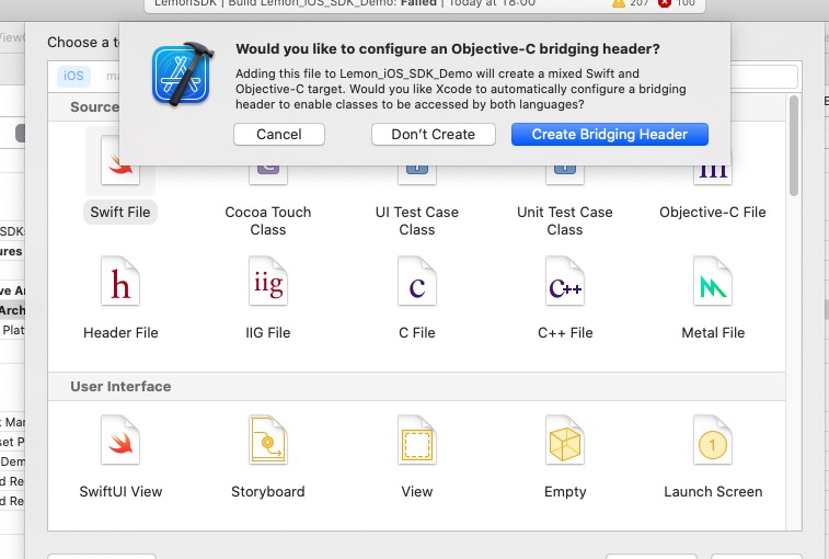 新版Facebook9.0.0以上版本需支持swift桥接,步骤如下图: