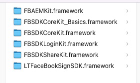 引入提供的三方登录文件夹内的Facebook文件夹内的全部SDK(如不使用分享SDK可去除FBSDKShareKit.framework)
