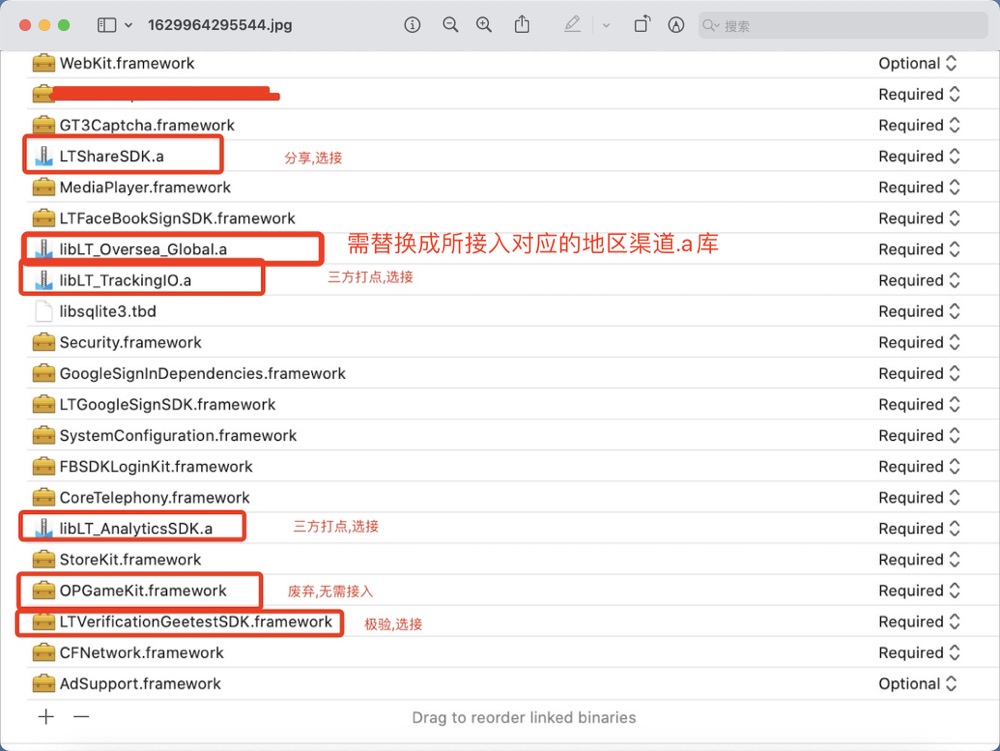 龙图静态库封装调用的第三方静态库或Framework