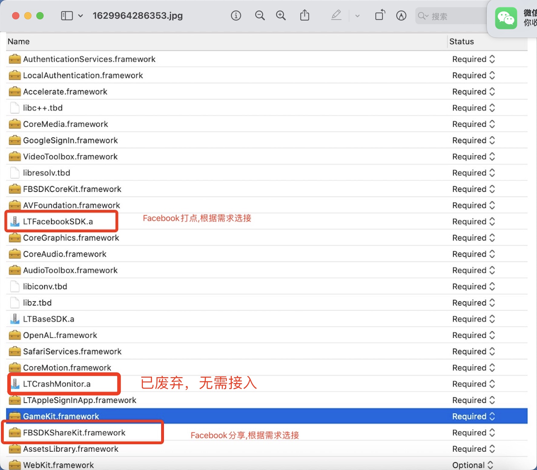 请注意Optional的库,除龙图SDK可选内容外,下图中所有内容都需要添加