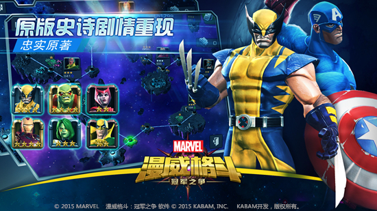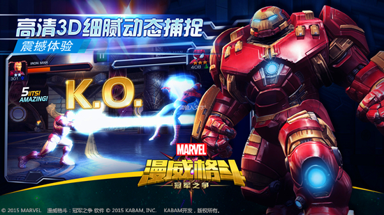 《漫威格斗:冠军之争》是一款由美国漫威公司正版授权,KABAM研发制作的以超级英雄为卖点热血格斗手游。由龙图游戏在大陆代理发行。本作的核心特色是全面收录了漫威旗下的超级英雄,受到了国内漫威爱好者的广泛关注;本作采用3D高清画质,高度还原了漫威超级英雄们风采,同时为玩家提供了生动逼真的视觉享受;游戏以手机用户习惯的滑动和触碰为基础开发了专用的操作模式,无论是否格斗游戏高手都可以轻松的发动必杀技和连续技,充分享受超级英雄对战带给玩家的无穷乐趣。《漫威格斗》计划未来与漫威电影同步,尽可能多的将漫威旗下的超级英雄植入游戏内,不断为用户带来新鲜感与满足感。