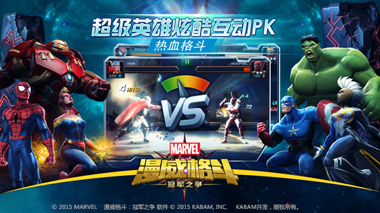 由Kabam开发,漫威正版授权合作,龙图游戏在国内代理发行的《漫威格斗: 冠军之争》(以下简称《漫威格斗》)今日迎来安卓平台首测。作为全球首款3D全息格斗手游,《漫威格斗》体现了强大的IP影响力,漫威全明星阵容震撼出击,足以点燃百万级漫威迷心中的激情。本作采用巨幕影院级高清画质以及专门为手机用户订制的操作方式来塑造品质,为玩家提供了电影大片级的互动体验。2015最燃的黑马,《漫威格斗》开创手游格斗玩法新格局,见证神奇你不容错过!