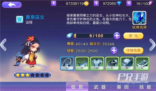 《尸兄》手游伙伴队伍再添新成员,三星伙伴巫女强势登录幸存者基地。巫女继承了黄泉阴寒之力,从小在神社长大的她背负着守护神社的任务。她虽拥有强大的能力,但性格却单纯如白纸,最爱小动物。巫女身着传统的神社祭祀礼服,白色的宽袖上衣,红色的百褶裙,脚穿白袜木屐。飘逸的蓝色等身长发,鲜艳的花朵头钗,让巫女单纯的性格显露无遗。
