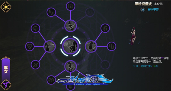1.黑暗能量波:基础的连续三段攻击,对敌人造成暗系伤害,并获得一个连击点。