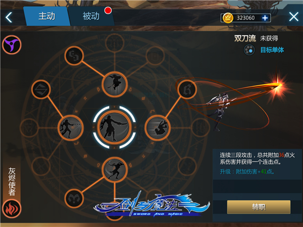 “灰烬使者”使用火系元素作为攻击手段,更倾向于瞬间爆发和群体伤害。符文技能拥有如瞬间移动、持续灼烧、暴击、群攻、消减防御等效果。“灰烬使者”姿态拥有超强的瞬间爆发能力,秒伤之高可以在眨眼之间将敌人一剑封喉。