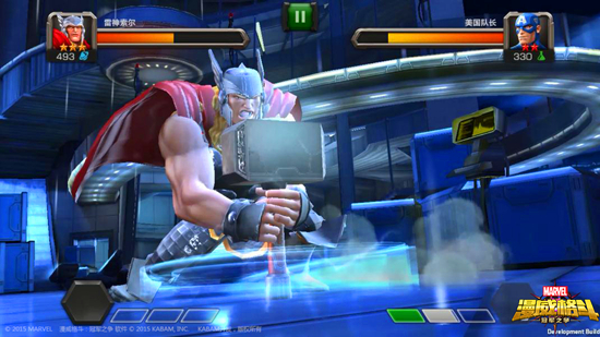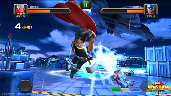 当左下角两格能量槽呈黄色亮起时,点击释放必杀技二。雷神索尔挥动雷神之锤蓄力,蓄满后索尔将雷神之锤投出猛击对手。在索尔的神力作用下,雷神之锤打出巨额伤害,并且击晕对手的几率也是大大提升!