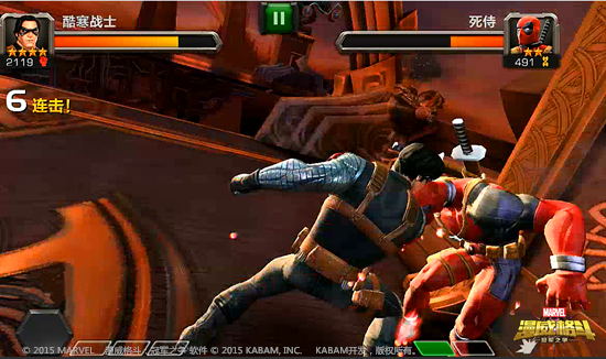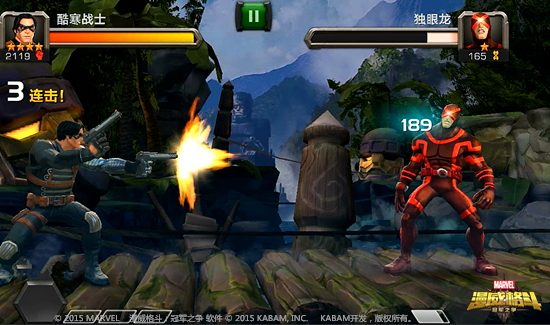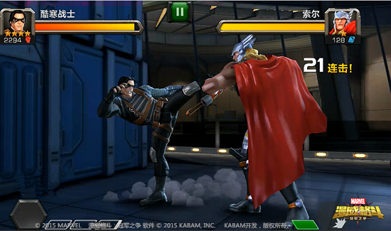 《漫威格斗》是一款由美国漫威公司正版授权,KABAM研发制作的以超级英雄为卖点热血格斗手游。由龙图游戏在大陆代理发行。本作的核心特色是全面收录了漫威旗下的超级英雄,受到了国内漫威爱好者的广泛关注;本作采用3D高清画质,高度还原了漫威超级英雄们风采,同时为玩家提供了生动逼真的视觉享受;游戏以手机用户习惯的滑动和触碰为基础开发了专用的操作模式,无论是否格斗游戏高手都可以轻松的发动必杀技和连续技,充分享受超级英雄对战带给玩家的无穷乐趣。《漫威格斗》计划未来与漫威电影同步,尽可能多的将漫威旗下的超级英雄植入游戏内,不断为用户带来新鲜感与满足感。