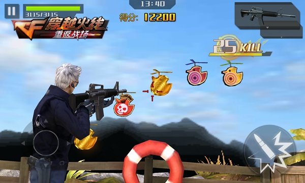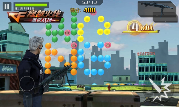 接下来换个玩法。怎么没有敌人出现?等等,天空中怎么突然升起了无数的气球。没错,疯狂气球就是打气球,满屏气球中夹杂着一些特殊气球,优先击爆特殊气球就会有惊喜出现,所以过程中可以提高射击的精准性。最后根据射击的成绩,还有大量奖励发放,绝对划算。