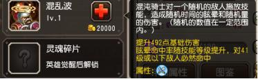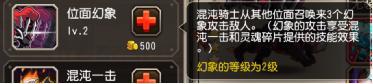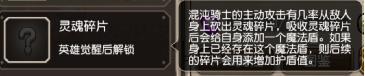 觉醒技能灵魂碎片,混沌骑士的主动攻击有几率从敌人身上砍出灵魂碎片,灵魂碎片可以为混沌骑士身上添加一个魔法盾,并且多收集灵魂碎片可以为盾充能。保证混沌骑士生存的一个核心技能,这个技能的存在,也可以看出混沌骑士是一个觉醒质变的英雄,以这种形式提供给了混沌骑士强大的生存续航能力。打出的碎片是一个白色的球,出现后会飞到混沌骑士的身上。