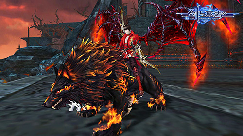 感觉纯净的白色穿搭太过素气,想做冬天里的一把火?那不妨选择金红色系的时装、坐骑和魔翼吧!中秋节时装搭配烈焰魔狼,或是沙暴龙时装搭配地狱马,绝对能让你拥有融化冰雪的热度!金、红、黑的经典配色,加之炫目的火焰特效,无论男女都会显得酷劲儿十足!