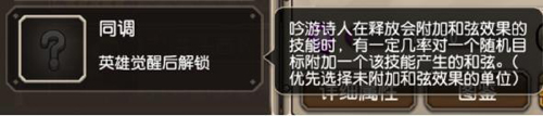 觉醒技能同调,在释放激励和共鸣时,一定几率对一个随机目标释放和弦,优先向一个没有和弦的英雄释放。