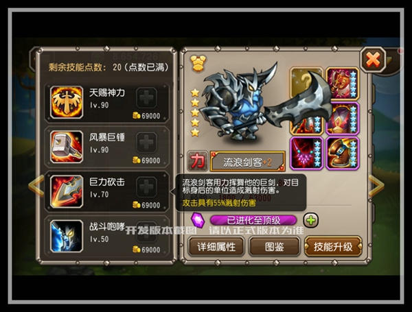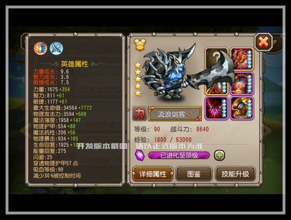 此外,流浪剑客有两种属性加成:刀剑系队友(灰烬之灵、末日使者、黑暗骑士、船长、小娜迦、骨王、剑圣、流浪剑客)增加225点物理暴击等级;变身系队友(老树、灵魂守卫、刚背猪、龙骑士、流浪剑客)增加540点物理攻击。