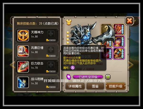 流浪剑客向目标投出风暴巨锤,对目标敌人及其附近的单位造成伤害的同时眩晕目标敌人。群伤加群控技能,同时这个技能是雷属性,雷暴大军又加一员。