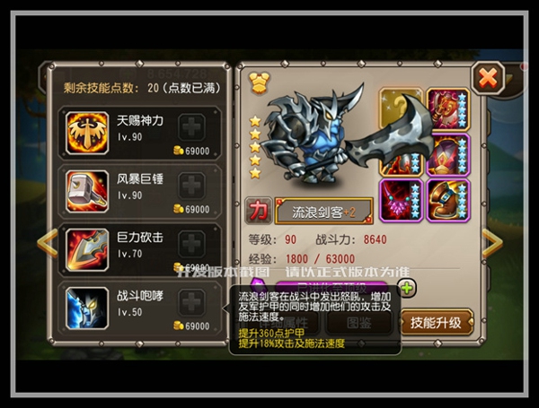 战斗咆哮:流浪剑客在战斗中发出怒吼,增加友军护甲的同时增加他们的攻击及施法速度。