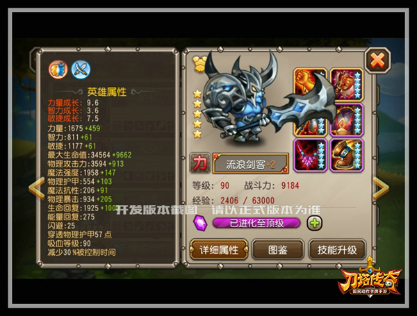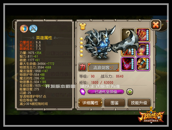 流浪剑客定位为前排强力输出副T,有着优秀的面板属性:物攻高达4300,护甲642,吸血90。还有两种属性加成:刀剑系加225点物理暴击,变身系加540点物理攻击,加上大招所增加的3600点攻击力,输出爆表!