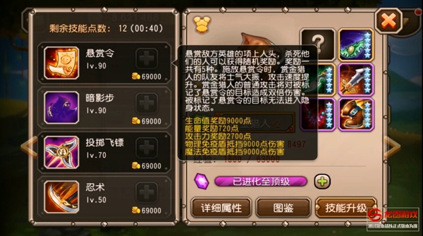 忍术技能配合暗影步的效果,使赏金成为名副其实的单点杀手,一定时间内的积蓄攻击和破隐一击的伤害加成,单体爆发能力极为可怕。