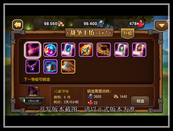 在这里,队长们可以锻造出自己所需的装备。在这个界面中,会根据队长们当前的工坊等级提供相应的可锻造装备,也会提示下一等级可以锻造的装备(新图标为近期准备更换的部分美术资源)。