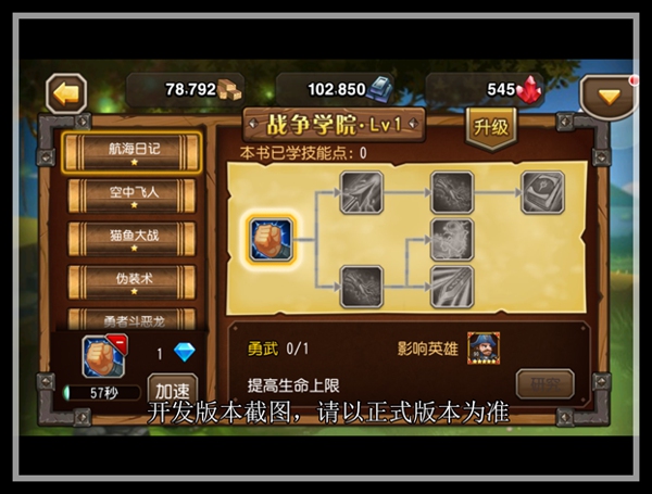 每套魔法书中会涉及几个英雄,通过花费一定的资源和时间进行技能研究就可以让这些英雄的属性得到加强。