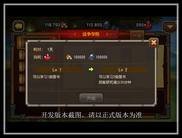 学院升级需要消耗一定材料和时间,下一级魔法书所涉及到的英雄和所获的能力都更加诱人,而研究所花费的时间也会减少。