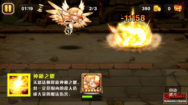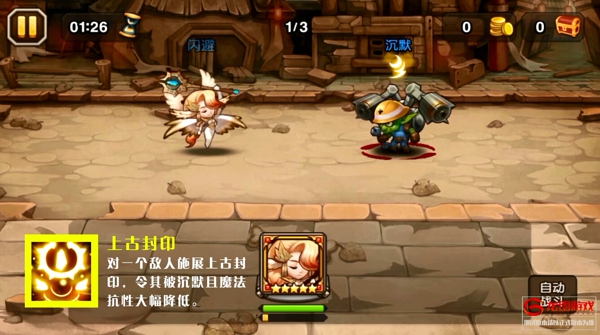 天怒法师在忽视魔抗上尤为出彩,同时四个技能中,有两个技能为暴力输出:大招对敌人造成4波范围伤害;秘法箭对敌人造成4次单体攻击;震荡光弹对敌人造成范围攻击并令敌人减速。另外,天怒法师开场即会释放一个上古封印,令一个目标敌人沉默且降低其魔抗。输出与控制兼备,同时位处中排,天怒法师上场,战斗必然会轻松许多。