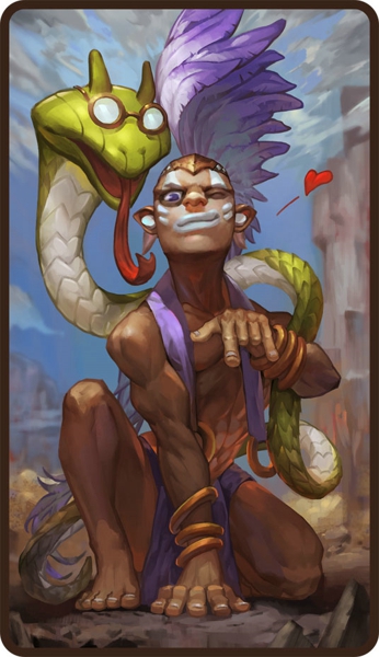 6月签到“暗影萨满”来自充满异域风情的神秘大陆,是法师家族的又一员猛将,熟练操纵蛇棒,并且得到蛇卫的守护,独特的武器定将成为它必杀的绝招,引起竞技场的又一轮轩然大波!