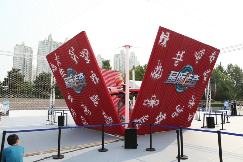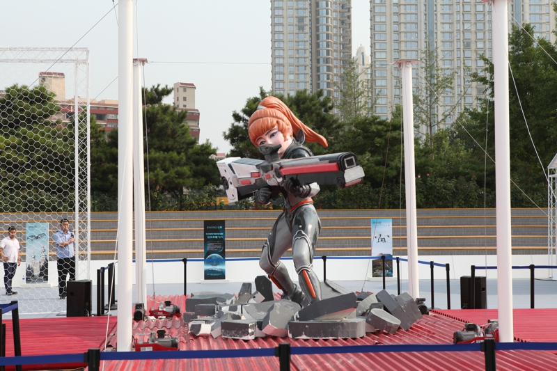 现场,《星际传奇》游戏人物“幽灵”亮相场中央,巨大而精美的雕塑不仅是游戏宣传的招牌,也是无人机体验活动的道具之一。在活动体验区,玩家可通过无飞机发射激光,与“幽灵”手中的枪完成对接,即可获得丰厚的奖品以作奖励。即便没有完成与“幽灵”的激光互动,只要掌握了无飞机驾驶的基本操作并在体验区试玩,均可获得一份精美礼品。