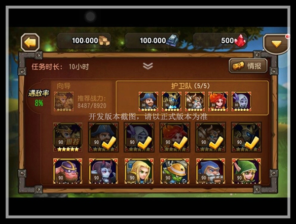 在新的远征玩法中,系统会给出一套推荐的先遣队阵容,先遣队可以扫荡关卡。按照推荐上场英雄,系统会对队长们派出的先遣队进行评分,从D到S,评分越高,先遣队扫荡的关卡数越多。