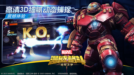 《漫威格斗》几乎收录了漫威旗下所有被中国观众所熟知的超级英雄,堪称全明星阵容。首测版将开放20位以上的英雄,其中包括金刚狼、绿巨人和钢铁侠等等。在保证原汁原味的基础上,每位英雄都拥有他(她)们标志性的三段必杀技。Kabam着重优化了图形引擎,完美还原了漫画中的英雄特性。因此,无论是金刚狼的艾德曼合金利爪,还是钢铁侠的高科技装备,都能带给玩家最逼真的角色体验。