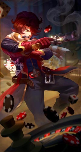 逆境逢生:赌徒在面临逆境时拥有更强的能力。当自己的筹码数不足7枚时,每7秒获得一枚筹码。自身的生命值越低,则会使自己获得额外的法术强度与忽视魔法抗性。当自己生命值不超过30%时,该技能的加成效果达到最大。