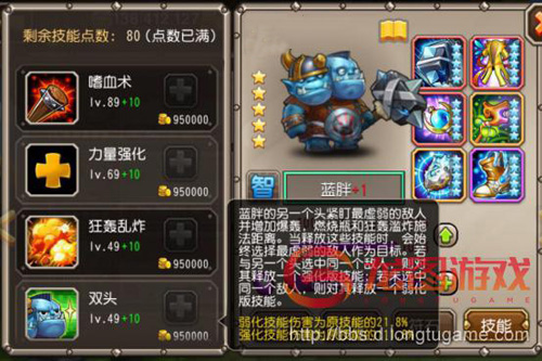 下图可以看到,对于切入型的敌人蓝胖有一定的克制作用,神器技能是专门针对血量少的英雄的,而切入英雄一般都为敏捷英雄,血量较少,所以被蓝胖,火枪,爱叫这些英雄就可以配合起来,专门切后或者防止切入英雄。