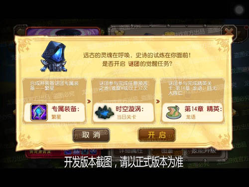 觉醒之旅第三站:谜团参与完成精英关卡:第14章-龙语,且无人阵亡,1次。