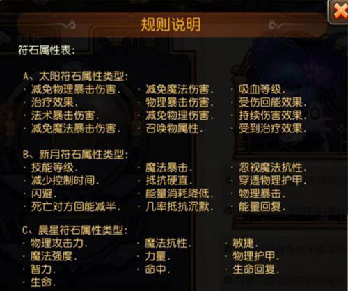符石分为三种、太阳符石、新月符石、晨星符石。每种符石的属性高达10-12种,所以对于现在的神器英雄选择符合英雄的符石就至关重要了。