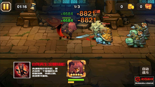 自我再生:食魂鬼每次受伤后,都会获得一个缓慢的生命回复效果,持续10秒,该效果可叠加。