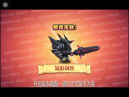 1、豪华铁甲——流浪剑客华丽变身,暗色的盔甲凸显了它孤傲的剑客风范,手持寒气逼人的大剑,如此强悍的气场无不震慑群雄。