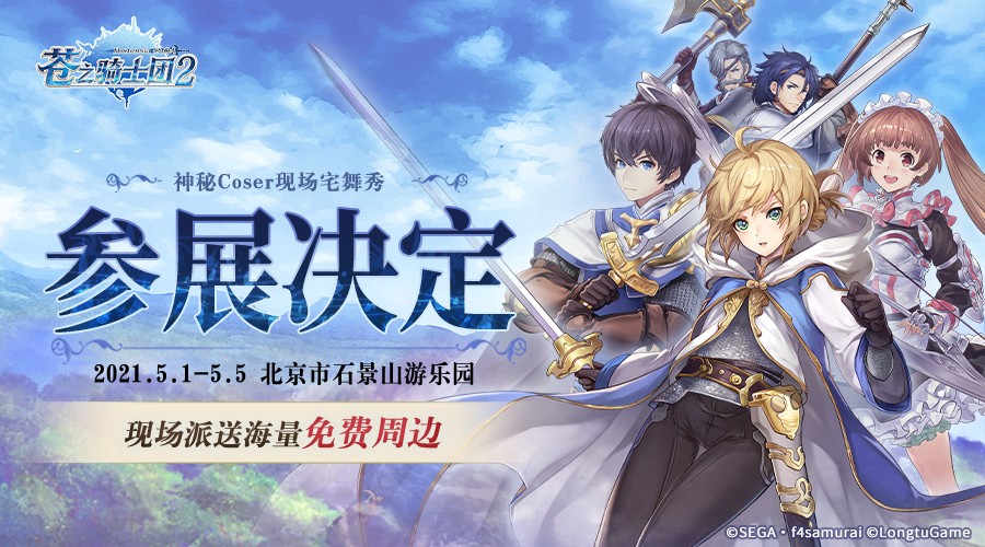 日本・世嘉正版授权,龙图游戏携手世嘉、f4samurai联合开发的SRPG手游《苍之骑士团2》,将于2021年5月1日正式亮相北京石景山游乐园。全新的展台搭建将带你穿越欧洲中世纪,感受奥尔坦西亚王国的宫廷风,还有【专属手游X动画纸袋】,【苍骑帆布袋】,【苍骑定制卫衣】等超多惊喜福利相送,让每一位骑士满载而归。