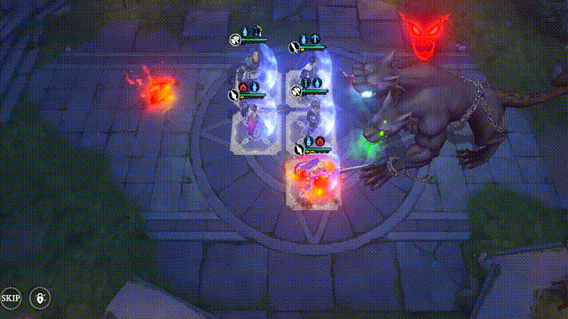 烈焰轰击:巨爪拍下,对所有单位造成魔法伤害,并有几率对目标留下“烈焰”效果(每回合受到定量的魔法伤害)。